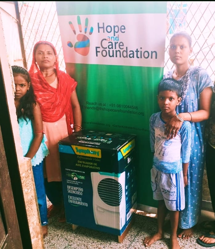 As part of the एक मुट्ठी आसमान program we at Hope and Care Foundation undertook a new initiative to bring relief for the people who struggle day in and day out to make a descent and dignified living.We identified households where large families stay together in single rooms and have a family member staying with them who has a serious medical condition.Lack of funds mean the family has to tend to the patients at home under very difficult conditions.We undertook to distribute room coolers to these families so that there is significant improvement in atleast some aspects of their life. We also gifted smart phones and tablets to girl students who have excelled in the recent Board examinations and are starting a new chapter in their lives by joining a college this year.